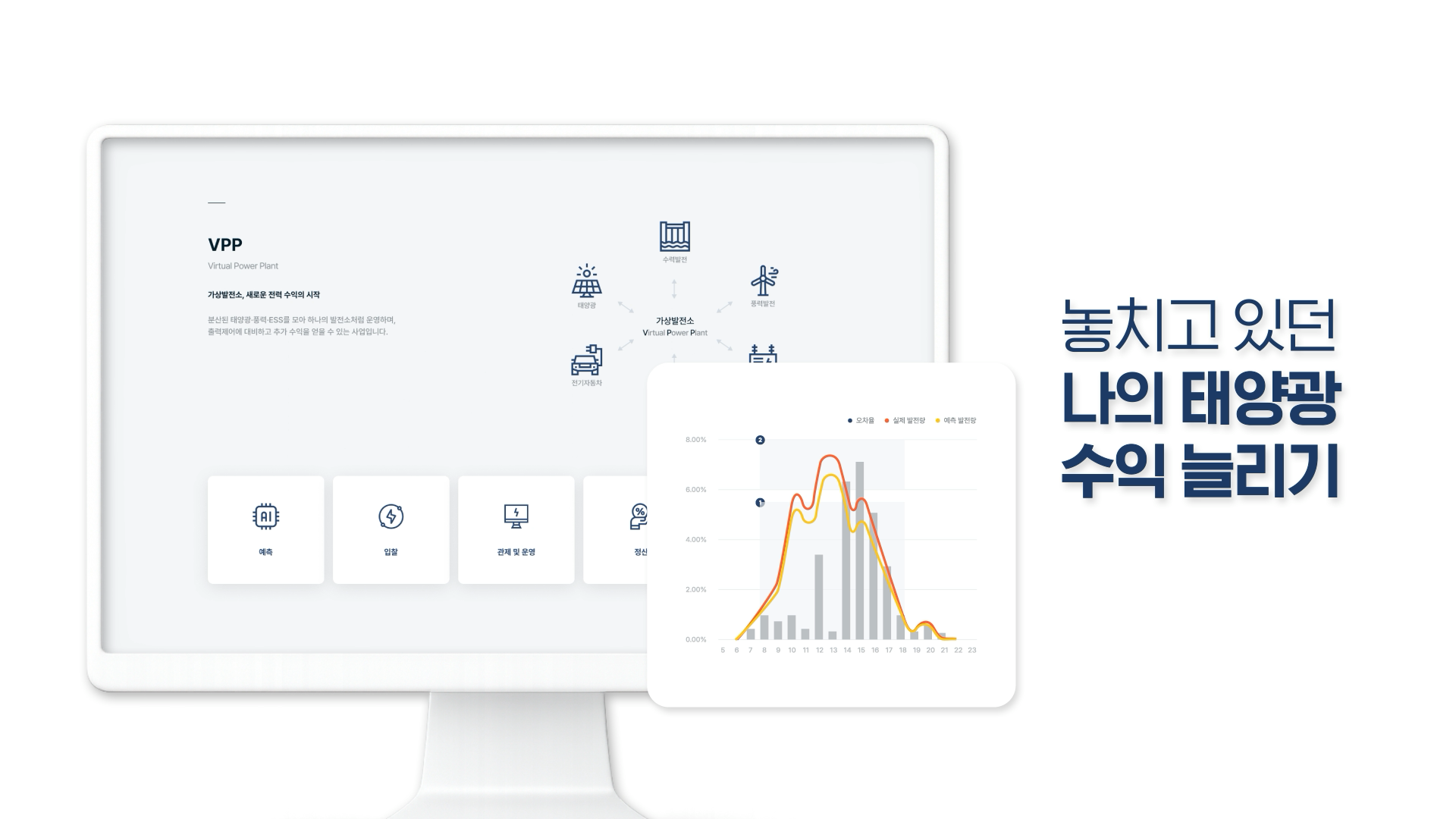 복잡할 수 있는 태양광 서비스를 (중고거래 / 수익 관리 / 인버터 교체) 3가지 핵심 기능으로 구조화해, 한눈에 이해할 수 있도록 구성했습니다.